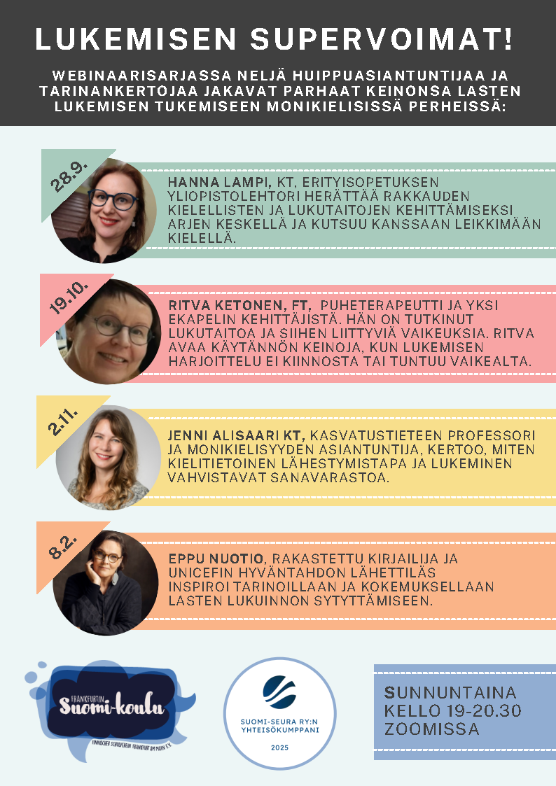 Suomi-kouluun ovat tervetulleita kaikki suomalaiset ja juuriltaan suomalaiset lapset ja nuoret (1 – 18v.).